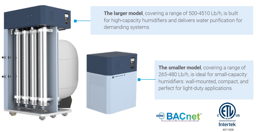 and steam to steam humidifiers. The Neptronic SKRO purifies water using a semi-permeable membrane to