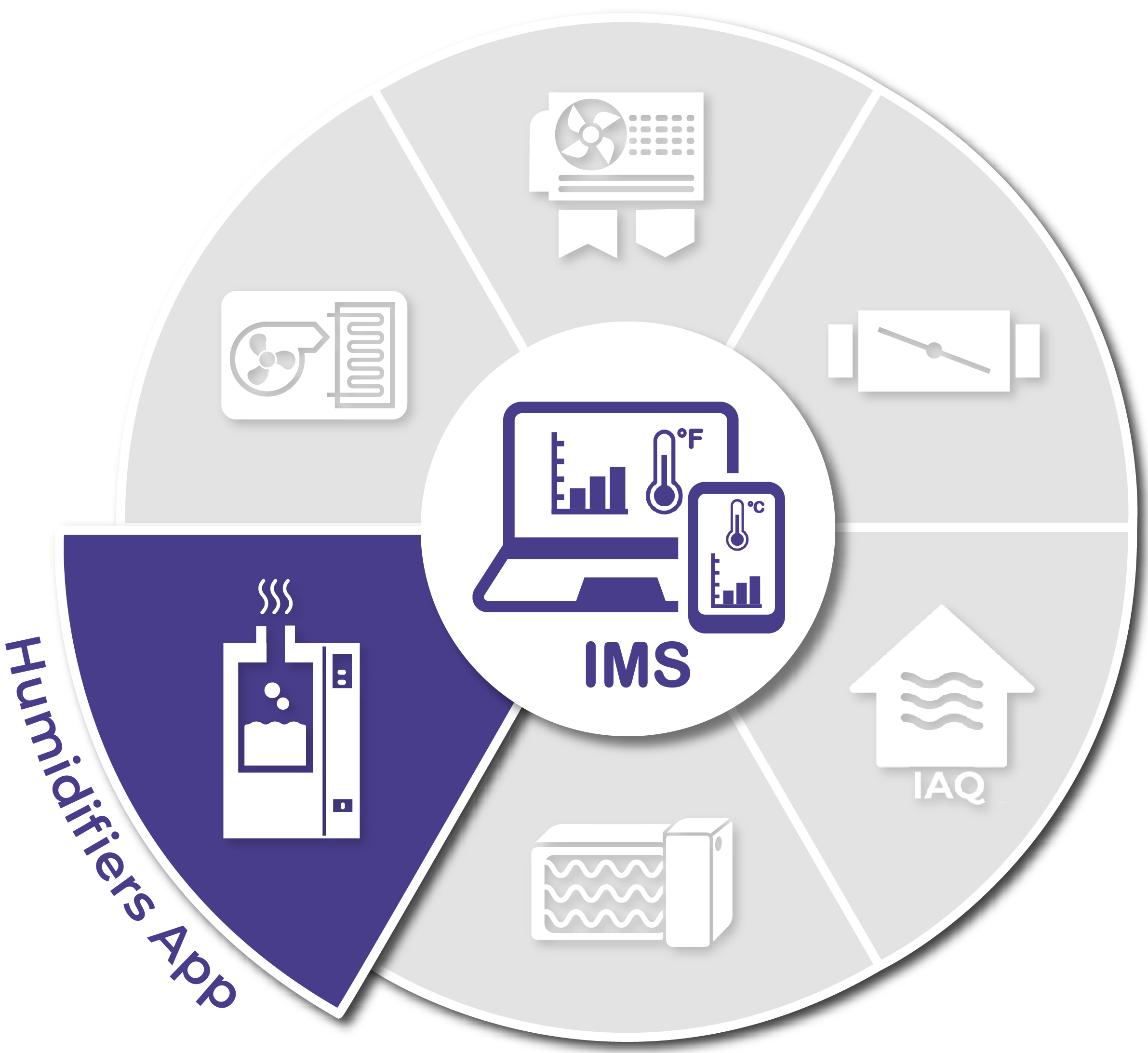 The Humidifiers App is part of Neptronic's IMS, designed to optimize the management of humidifiers in various buildings by providing real-time data, process monitoring, and remote support.